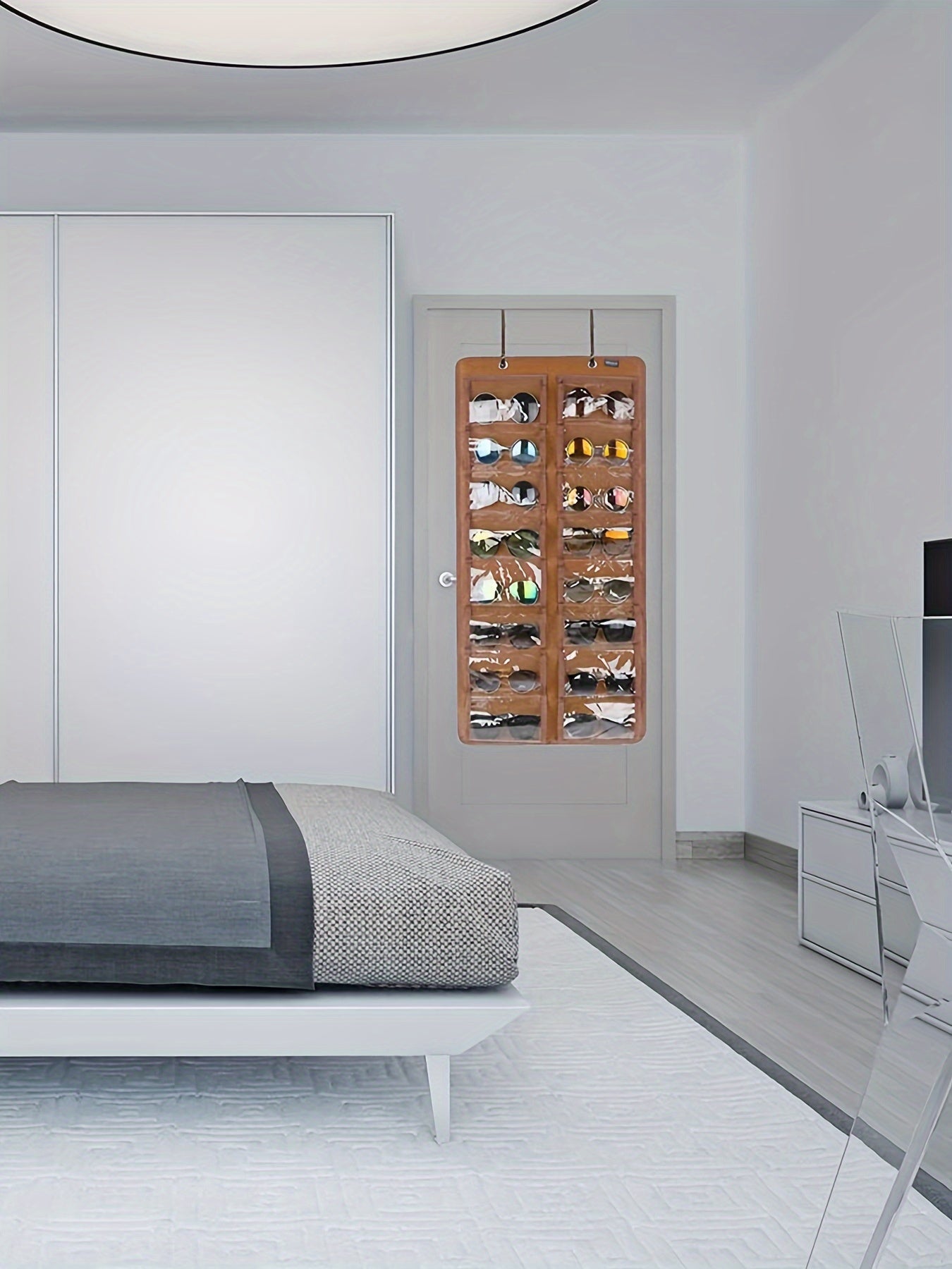 16-Slot Glasses Organizer - Hanging PVC Dust-Proof Holder with Metal Hook, Sturdy Rope | Ideal for Women's Fashion, Perfect Gift